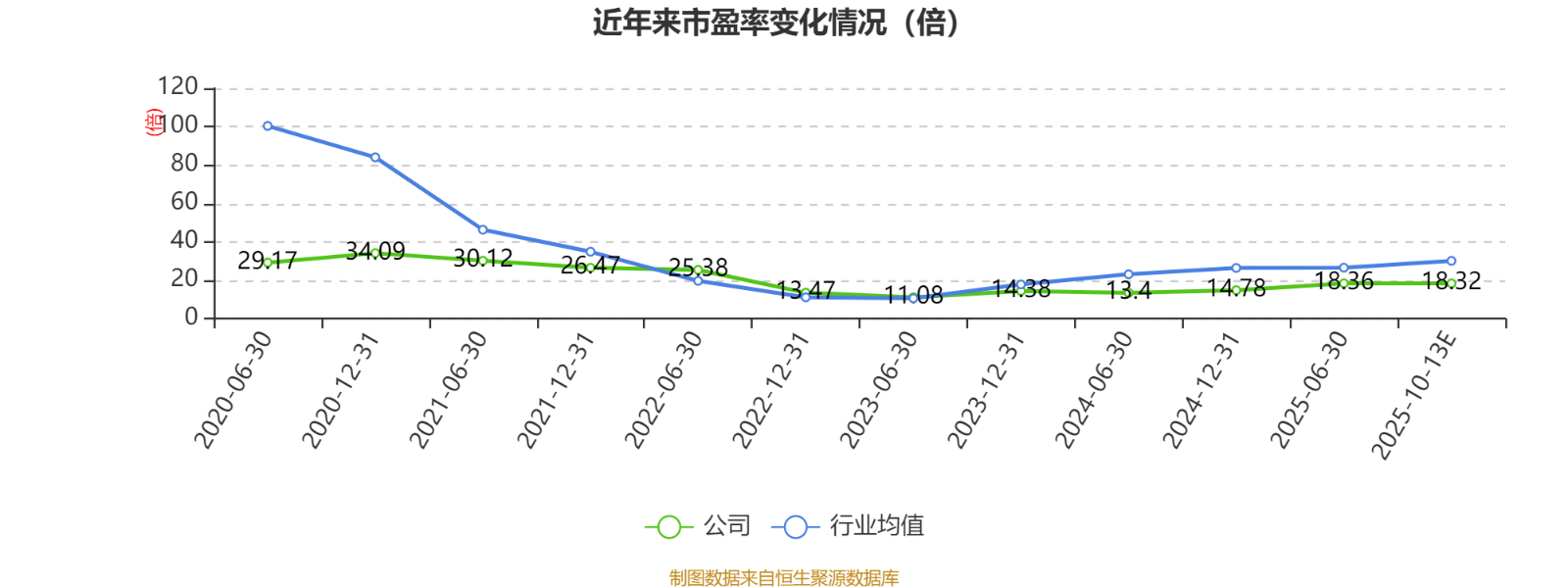 以本次披露业绩预告均值计算,公司近年市盈率(TTM)图如下所示: