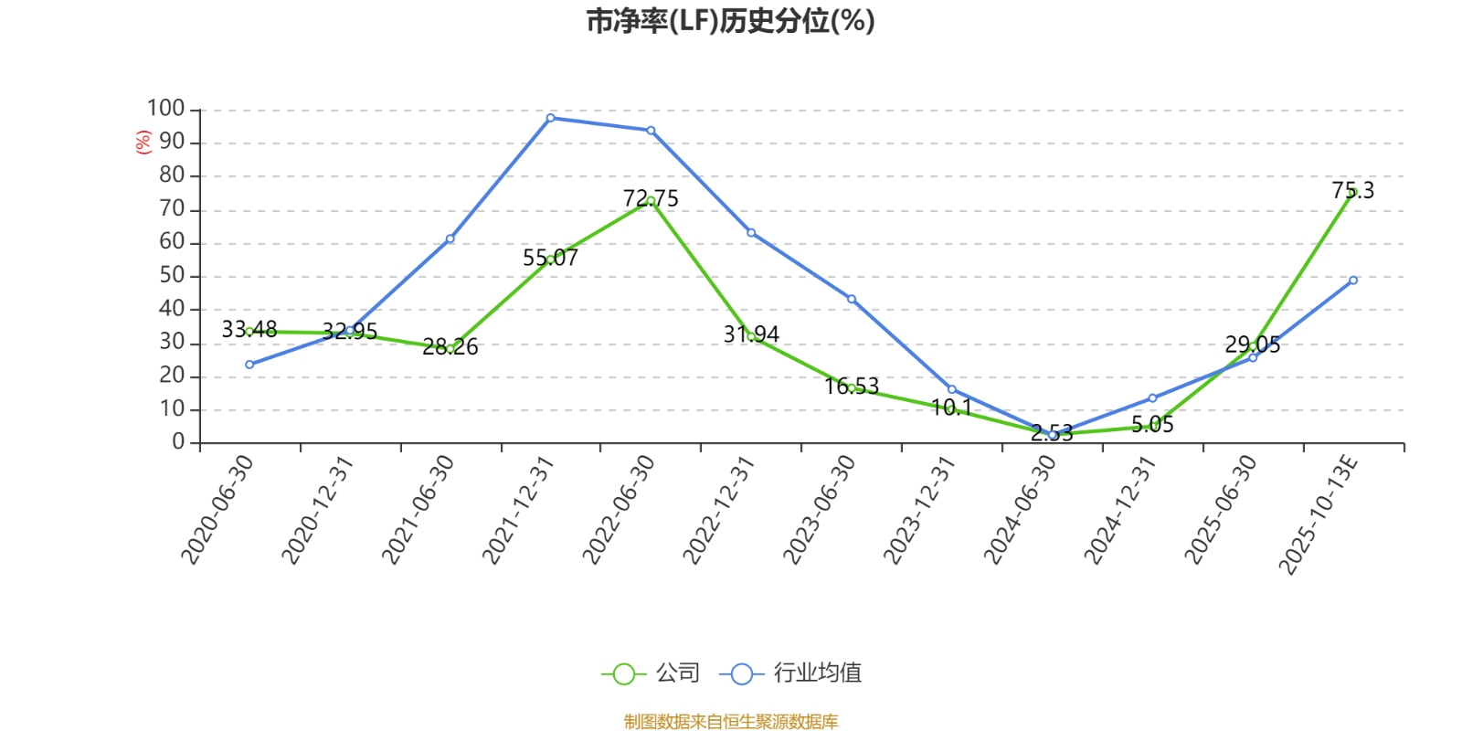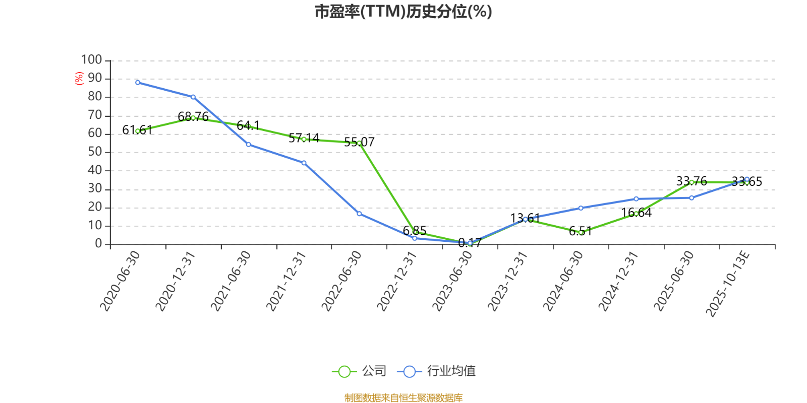 市盈率、市净率为负时,不显示当期分位数,会导致折线图中断。