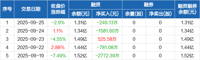 春兴精工:融资净偿还249.13万元,融资余额1.31亿元(09-25)