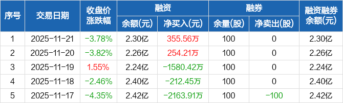 金新农:融资净买入355.56万元,融资余额2.3亿元(11-21)