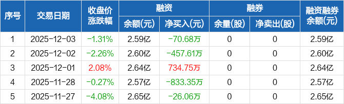 南方精工:融资净偿还70.68万元,融资余额2.59亿元(12-03)