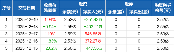 南方精工:融资净偿还251.43万元,融资余额2.52亿元(12-19)