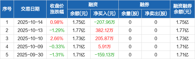 惠博普:融资净偿还207.96万元,融资余额1.75亿元(10-14)
