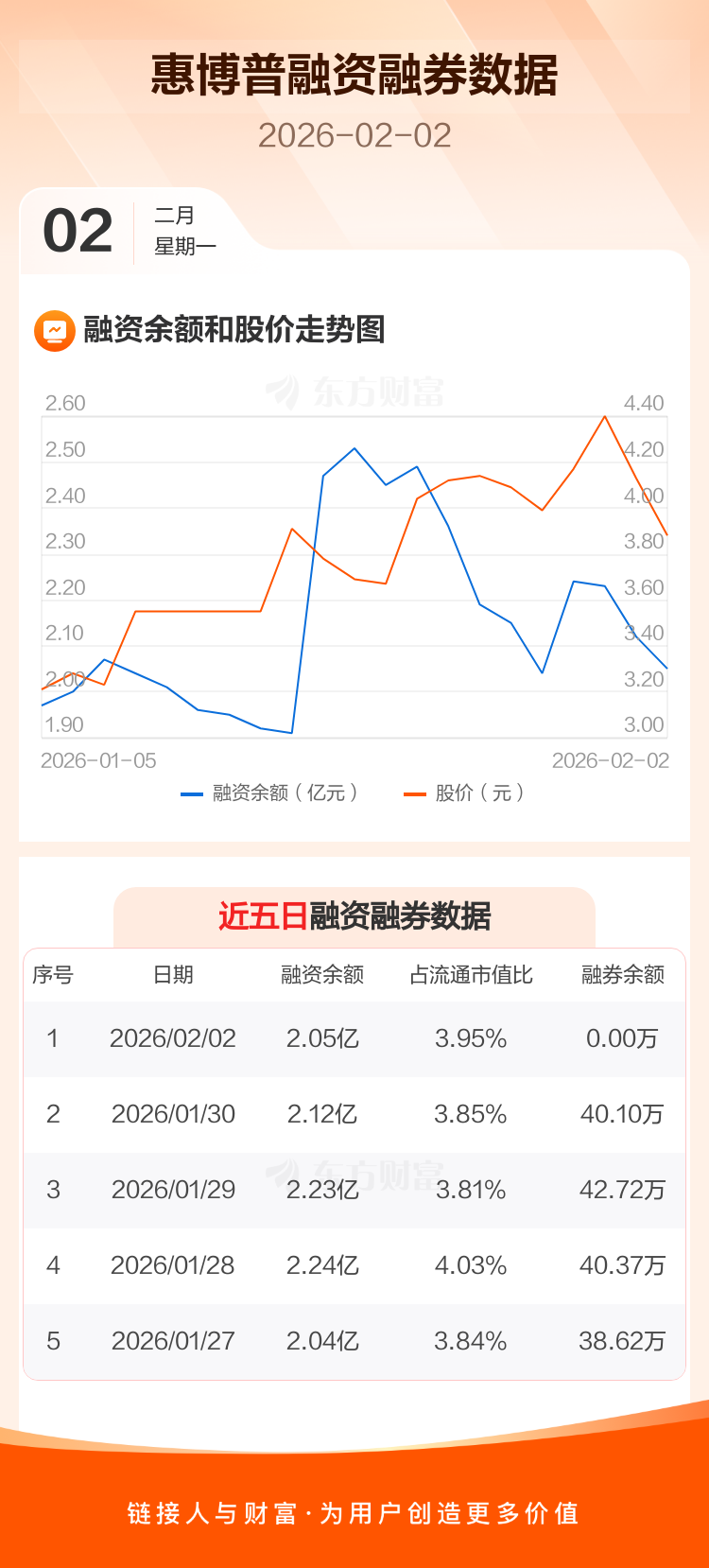 交易所最新数据显示,惠博普于2026年2月2日获融资买入2295.29万元,融资偿还3059.99万元,当日融资净偿还764.69万元。目前,该股融资余额2.05亿,占流通市值比例为3.95%。