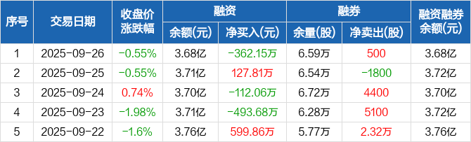 辉隆股份:融资净偿还362.15万元,融资余额3.68亿元(09-26)