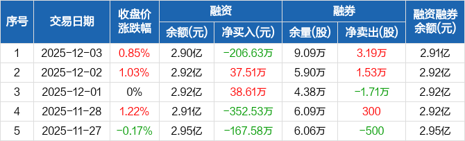 辉隆股份:融资余额2.9亿元,创近一年新低(12-03)