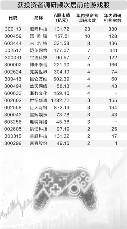 投资者调研次数较多的还有汤姆猫、吉比特、恺英网络、宝通科技、神州泰岳等。