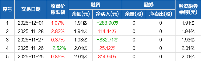 通达股份:融资净偿还283.9万元,融资余额1.91亿元(12-01)