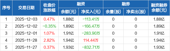 通达股份:连续3日融资净偿还累计563.78万元(12-03)