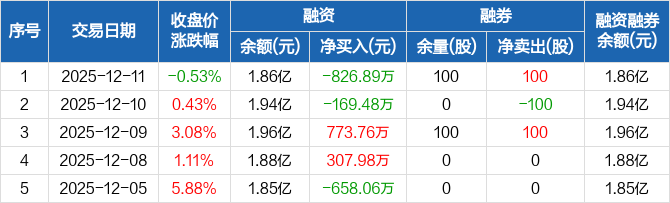 通达股份:融资净偿还826.89万元,融资余额1.86亿元(12-11)