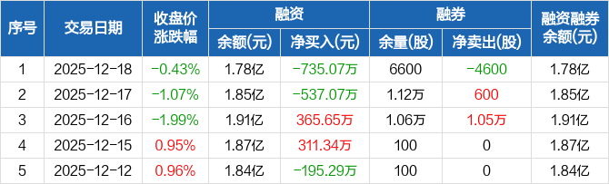 通达股份:融资净偿还735.07万元,融资余额1.78亿元(12-18)