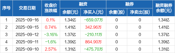 徐家汇:融资净偿还659.07万元,融资余额1.34亿元(09-16)