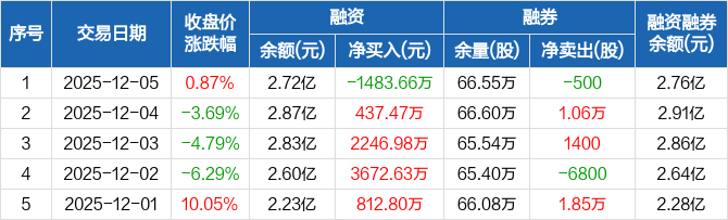 森马服饰:融资净偿还1483.66万元,融资余额2.72亿元(12-05)
