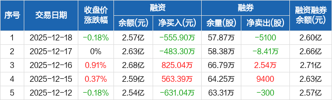 森马服饰:融资净偿还555.9万元,融资余额2.57亿元(12-18)