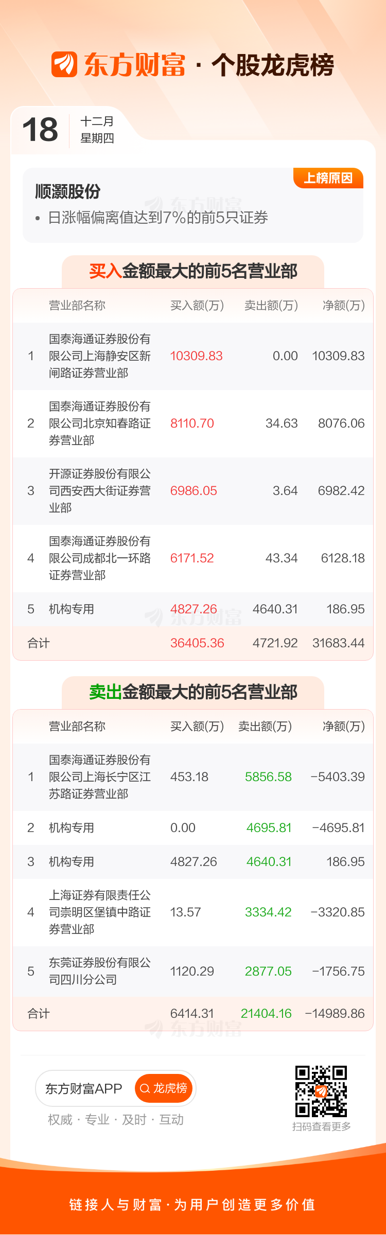 顺灏股份(002565)龙虎榜数据(12-18)