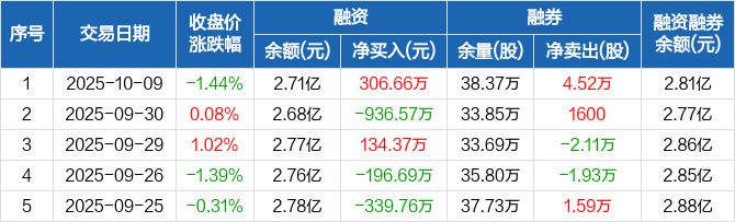 百润股份:融资净买入306.66万元,融资余额2.71亿元(10-09)