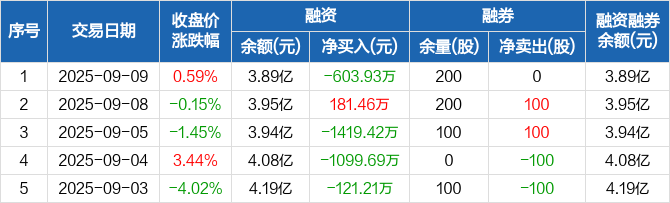 贝因美:融资净偿还603.93万元,融资余额3.89亿元(09-09)