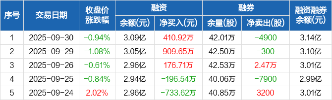 索菲亚:融资余额3.09亿元,创近一年新高(09-30)