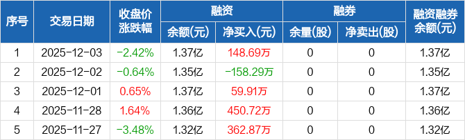 明牌珠宝:融资净买入148.69万元,融资余额1.37亿元(12-03)