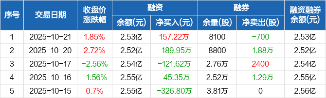 中京电子:融资净买入157.22万元,融资余额2.53亿元(10-21)