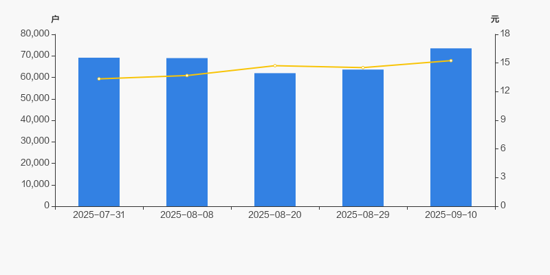 2025年7月31日至今,公司股东户数有所增长,区间涨幅为6.30%。2025年7月31日至2025年9月10日区间股价上涨14.32%。