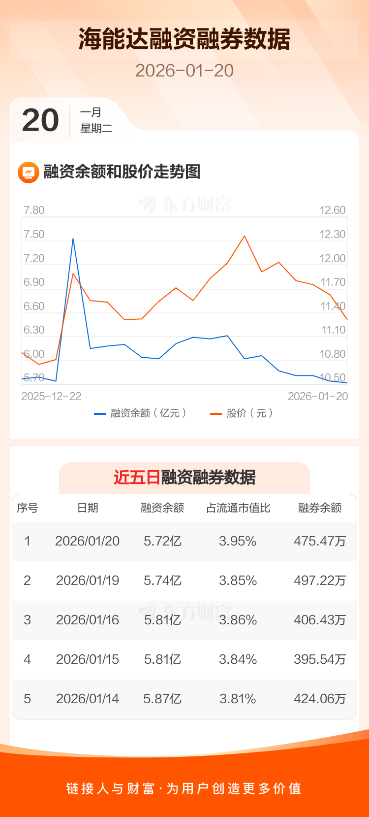 交易所最新数据显示,海能达于2026年1月20日获融资买入2773.73万元,融资偿还2914.28万元,当日融资净偿还140.55万元。目前,该股融资余额5.72亿,占流通市值比例为3.95%。