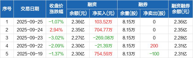 双星新材:融资净买入103.52万元,融资余额2.36亿元(09-25)