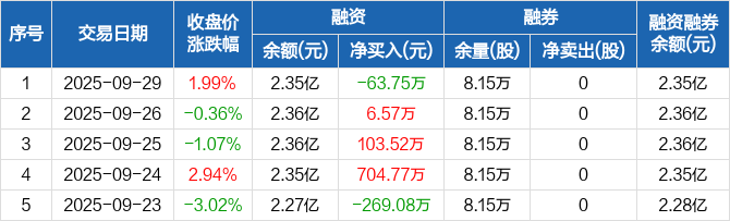 双星新材:融资净偿还63.75万元,融资余额2.35亿元(09-29)