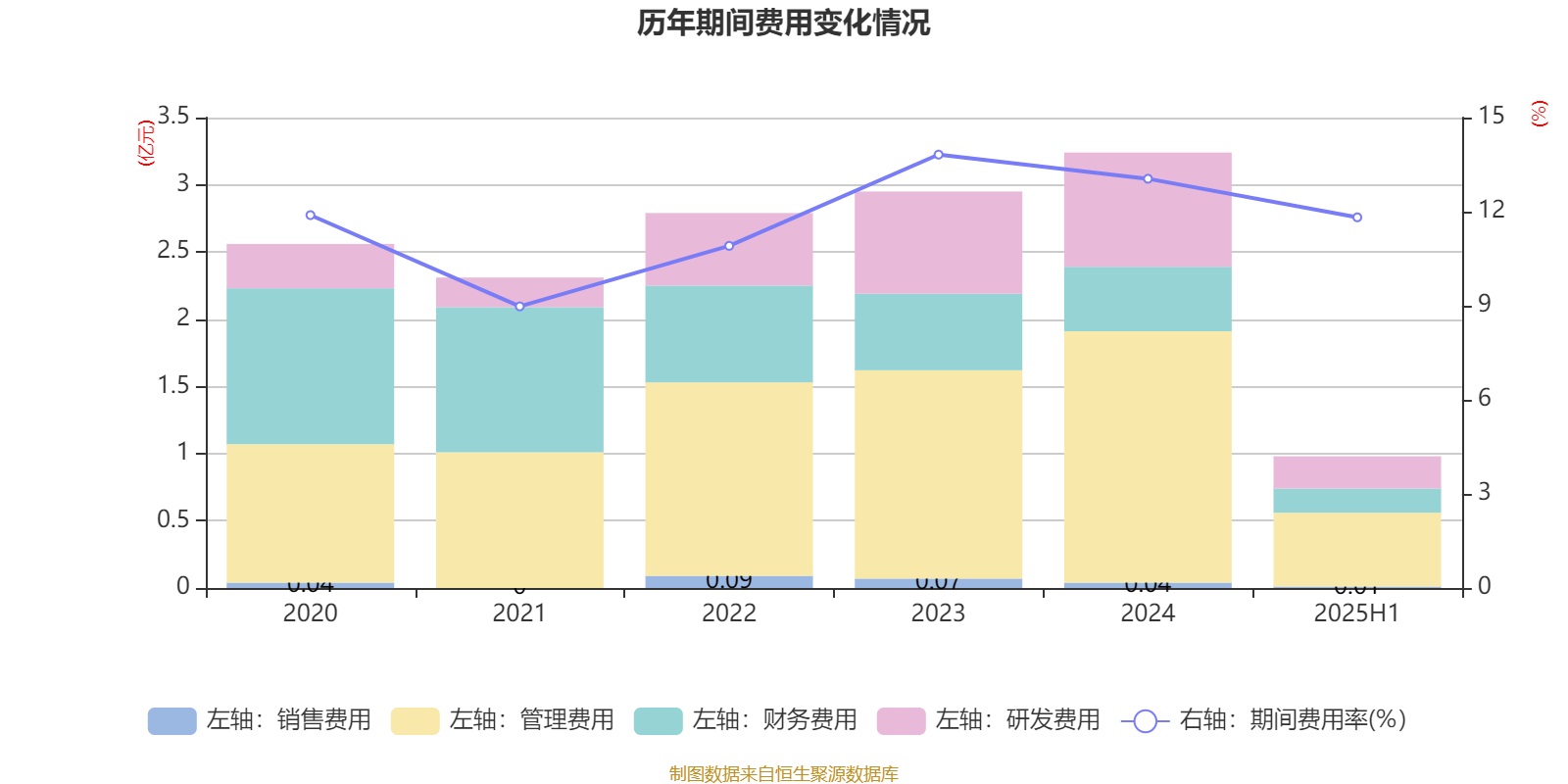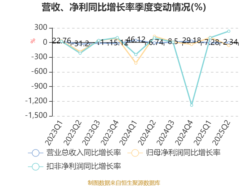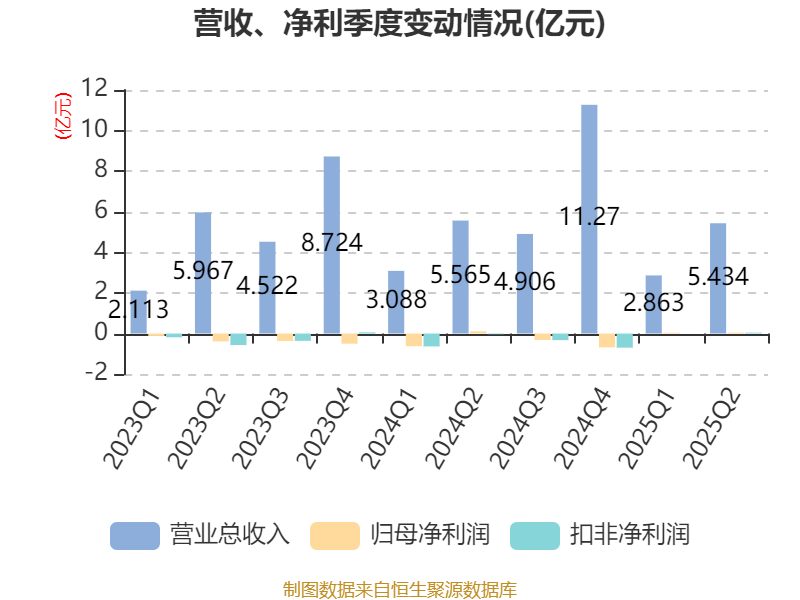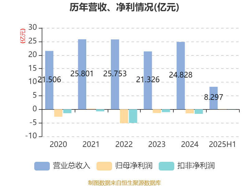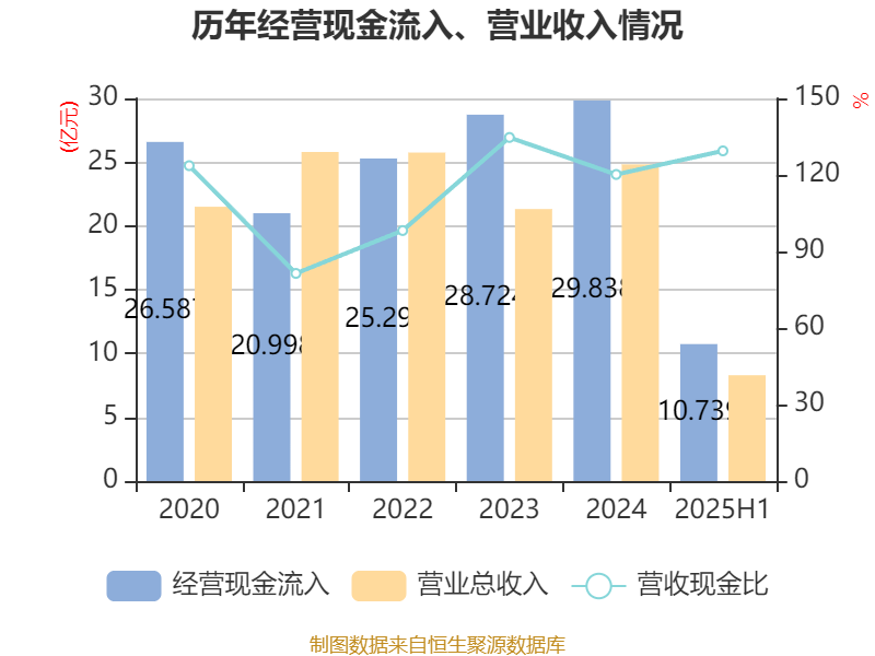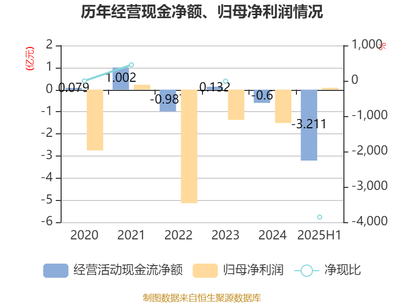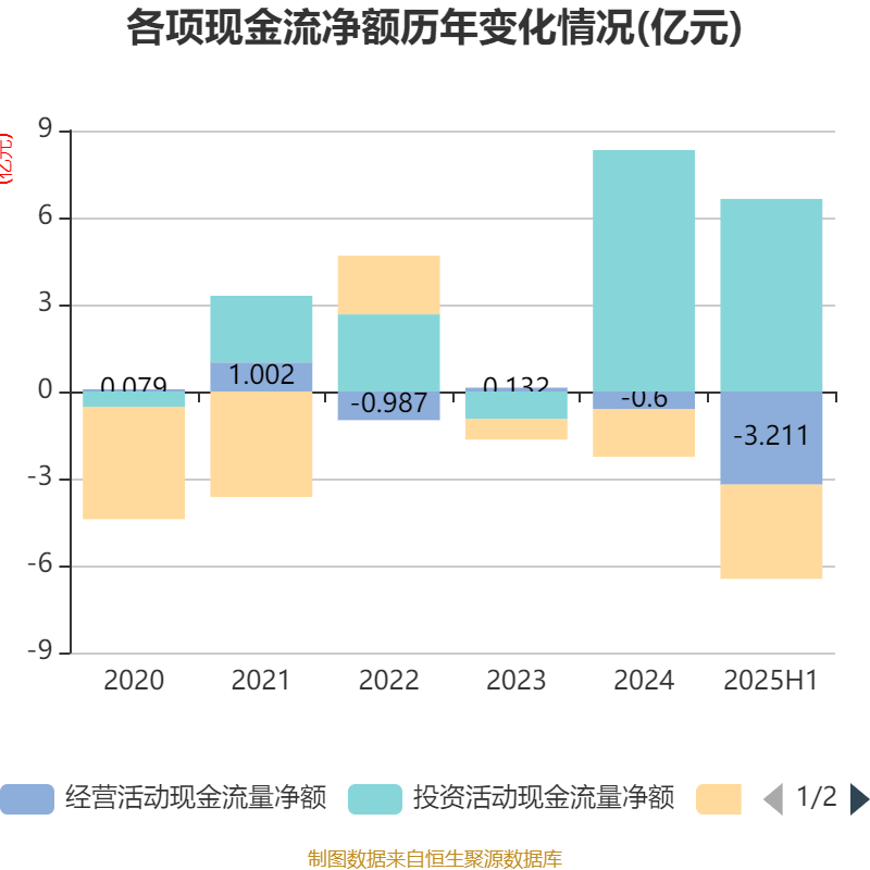 2025年上半年,公司经营活动现金流净额为-3.21亿元,同比减少1.07亿元;筹资活动现金流净额-3.25亿元,同比减少2.98亿元;投资活动现金流净额6.64亿元,上年同期为2.73亿元。