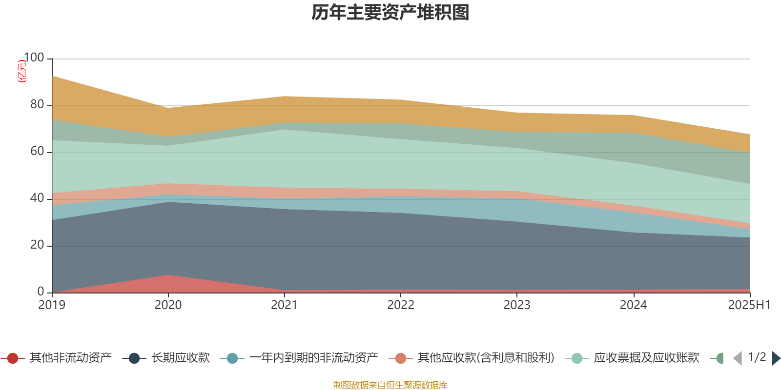 资产重大变化方面,截至2025年上半年,公司一年内到期的非流动资产较上年末减少57.54%,占公司总资产比重下降5.92个百分点;货币资金较上年末增加2.42%,占公司总资产比重上升2.54个百分点;应收票据及应收账款较上年末减少7.82%,占公司总资产比重上升0.8个百分点;无形资产较上年末增加1292.32%,占公司总资产比重上升0.59个百分点。