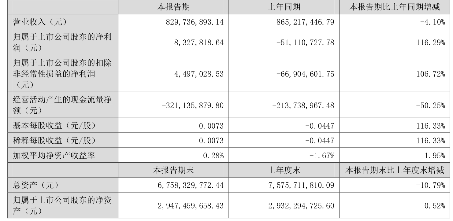 中证智能财讯 *ST围海(002586)8月26日披露2025年半年度报告。2025年上半年,公司实现营业总收入8.3亿元,同比下降4.10%;归母净利润832.78万元,同比扭亏;扣非净利润449.7万元,同比扭亏;经营活动产生的现金流量净额为-3.21亿元,上年同期为-2.14亿元;报告期内,*ST围海基本每股收益为0.0073元,加权平均净资产收益率为0.28%。