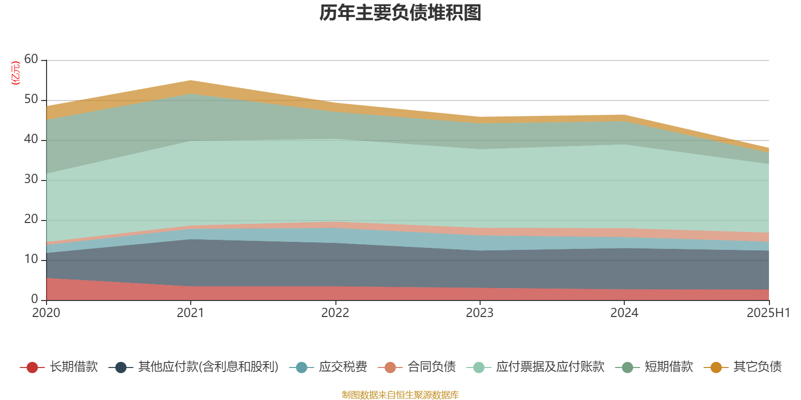 负债重大变化方面,截至2025年上半年,公司短期借款较上年末减少51.23%,占公司总资产比重下降3.48个百分点;应付票据及应付账款较上年末减少18.11%,占公司总资产比重下降2.27个百分点;其他应付款(含利息和股利)较上年末减少5.58%,占公司总资产比重上升0.79个百分点;合同负债较上年末增加1.53%,占公司总资产比重上升0.41个百分点。