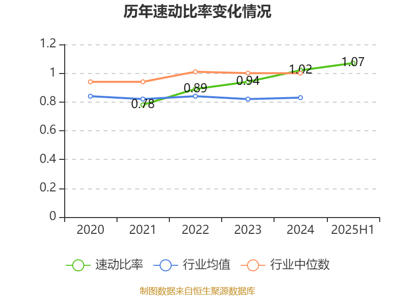 2025年上半年,公司流动比率为1.1,速动比率为1.07。