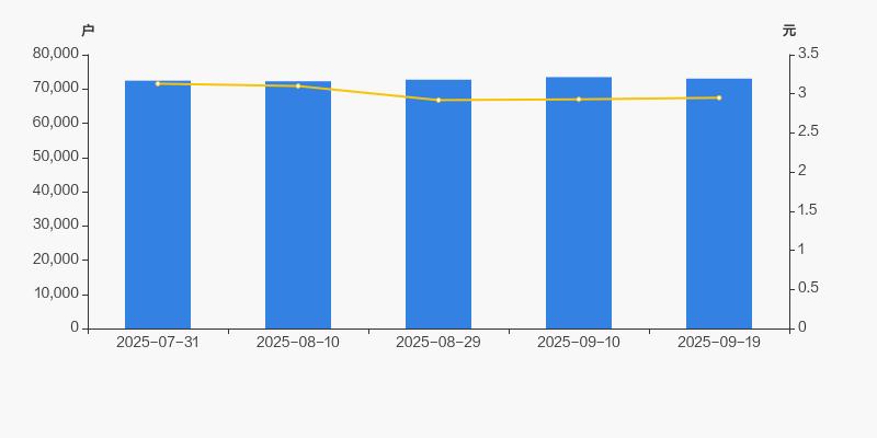 2025年7月31日至今,公司股东户数有所增长,区间涨幅为0.84%。2025年7月31日至2025年9月19日区间股价下降5.75%。