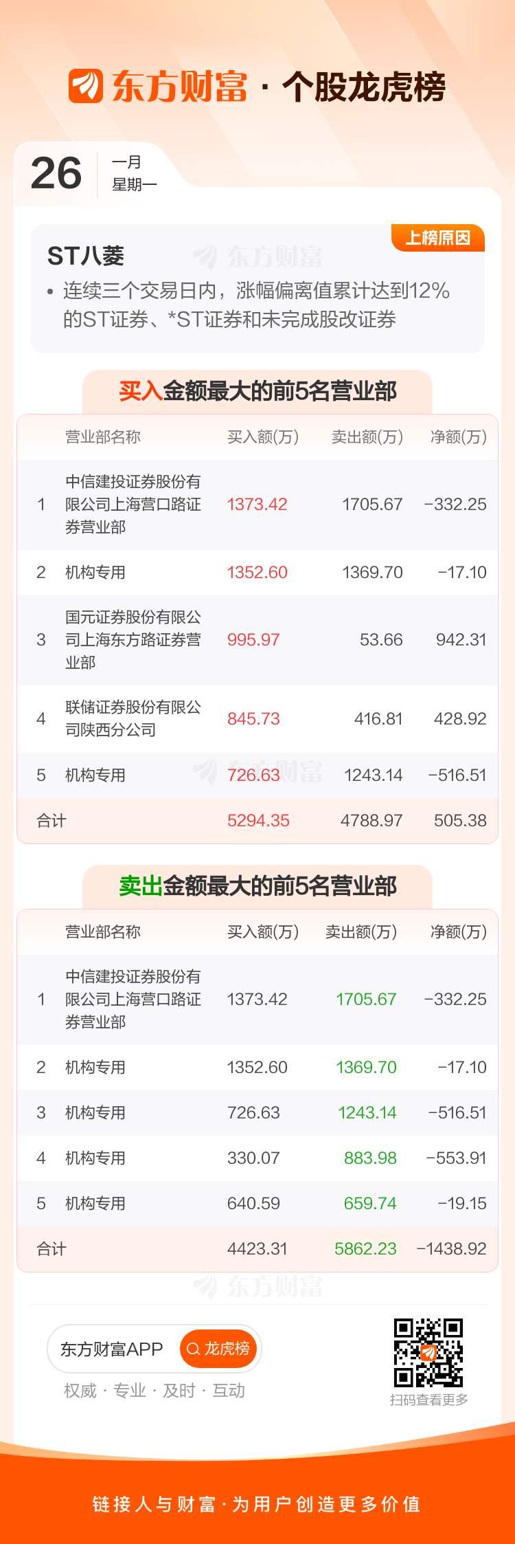 ST八菱(002592)龙虎榜数据(01-26)