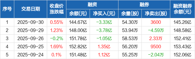 比亚迪:融资净偿还3.33亿元,两市排名第13(09-30)