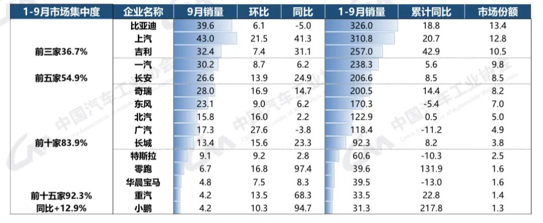 汽车销量排名前十五位的集团销量数据单位:万辆、%