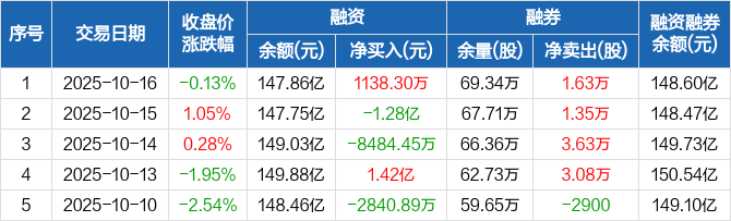 比亚迪:融资净买入1138.3万元,融资余额147.86亿元(10-16)
