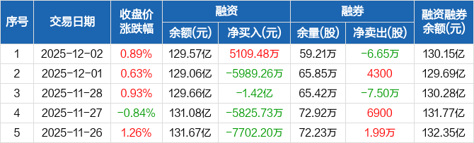 比亚迪:融资净买入5109.48万元,融资余额129.57亿元(12-02)