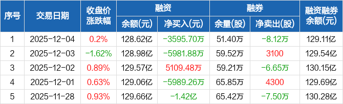 比亚迪:融资净偿还3595.7万元,融资余额128.62亿元(12-04)
