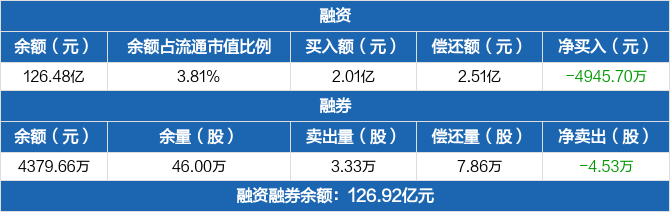 比亚迪:融资净偿还4945.7万元,融资余额126.48亿元(12-17)