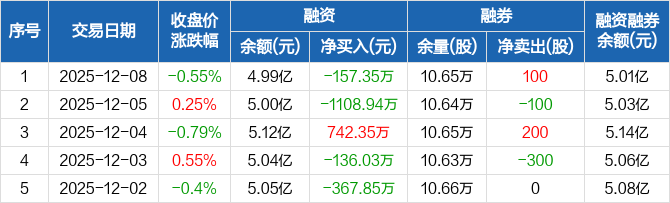 金禾实业:融资净偿还157.35万元,融资余额4.99亿元(12-08)