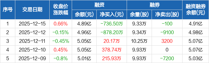 金禾实业:融资净偿还736.5万元,融资余额4.89亿元(12-15)