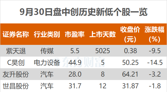 东方财富Choice数据显示,今日有4只个股盘中股价创历史新低。