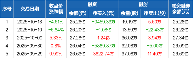 领益智造:融资净偿还9459.33万元,融资余额25.26亿元(10-13)