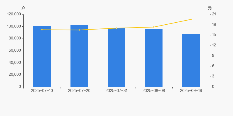 自2025年7月20日以来,公司股东户数连续3期下降,截至目前减幅为14.24%。2025年7月20日至2025年9月19日区间股价上涨18.58%。