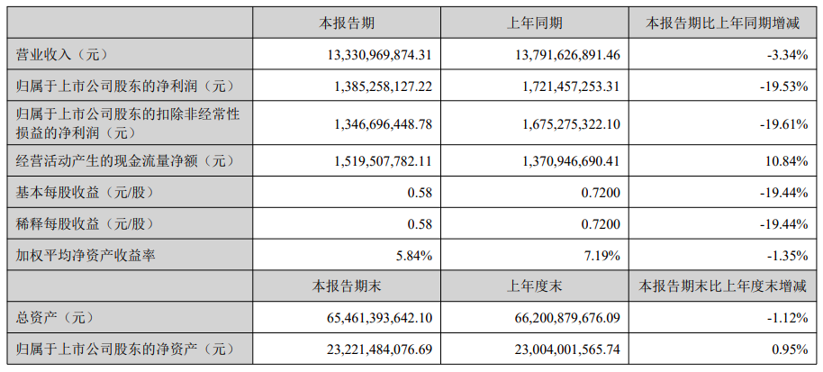 2025年上半年,龙佰集团实现营业收入133.31亿元,同比下降3.34%;归母净利润为13.85亿元,同比下降19.53%;扣非净利润为13.47亿元、同比下降19.61%。