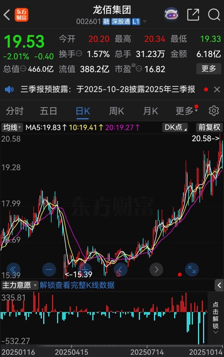 龙佰集团是A股钛白粉龙头企业。截至10月14日收盘,龙佰集团股价报19.53元/股,跌幅为2.01%,总市值为466亿元。