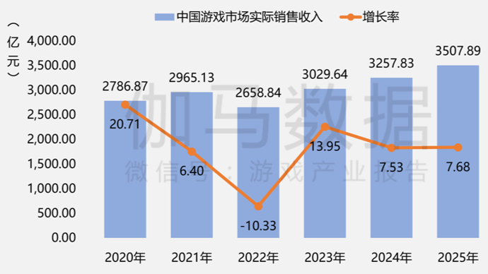 2025年,中国游戏市场规模再创历史新高!12月19日,在沪闭幕的中国游戏产业年会上,《2025年中国游戏产业报告》新出炉。数据显示,国内游戏市场实际销售收入3507.89亿元,同比增长7.68%;用户规模6.83亿,同比增长1.35%;自研游戏海外市场实际销售收入204.55亿美元,同比增长10.23%,规模已连续六年超千亿元人民币。