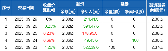 大连电瓷:融资净偿还214.41万元,融资余额2.3亿元(09-29)